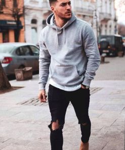 Sweat A Capuche Gris Homme